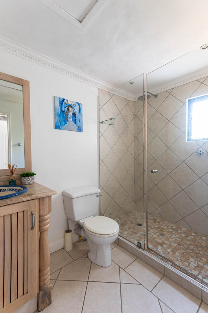 The main bedroom has a King size bed with an on suite bathroom. Guest bedrooms provide 1 double bed, 1 single and 1 bunk bed for kiddies. Both bathrooms have a shower in each. (No Bath). Single toilet downstairs.